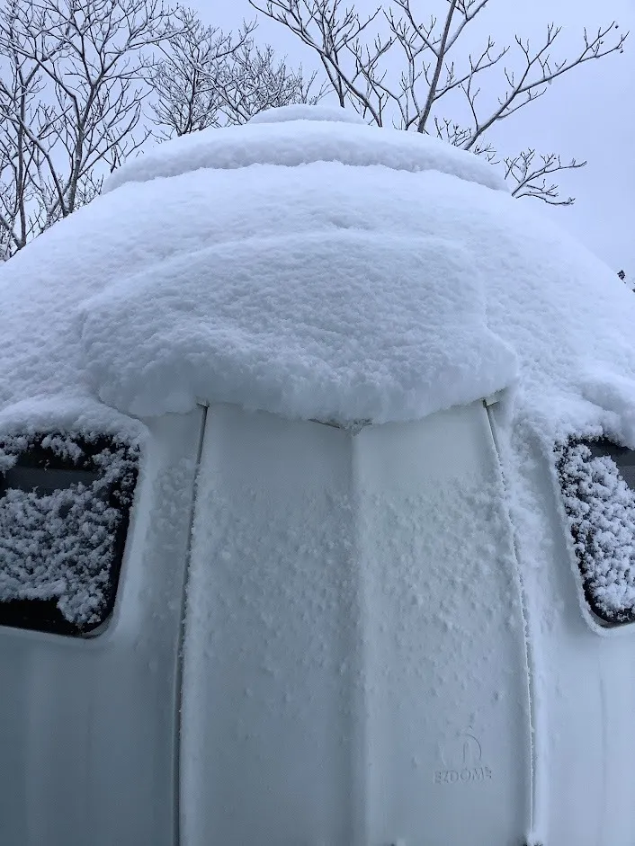キャンプ場自慢のドームハウスがなんと「かまくら」になってしまいました